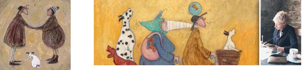 Her works centres around her characters, The Mustards – Ernest Hemmingway Mustard lives on the Brighton Hove border in a not-so-damp basement flat, with his dear lady wife Violet and Doris their grumpy and rather portly Jack Russel Terrier. Sam Toft has been their official picture maker and story teller for over 20 years. These characters are her imaginary friends, always there inside her head, helping make sense of a world that can often seem stranger than fiction.